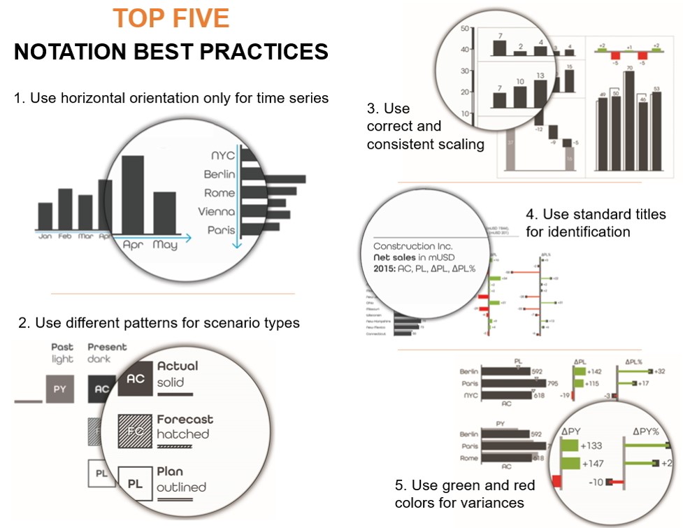 One additional gap in many data-related reports is that data is not visualized clear enough. Business Intelligence Tools like PowerBI, Qlik or in the broadest sense Excel are very limited regarding standard visualizations and chart-led data representation. E.g. scaling is not correct and consistent, use of colors is not standardized, title concepts are missing, etc.
