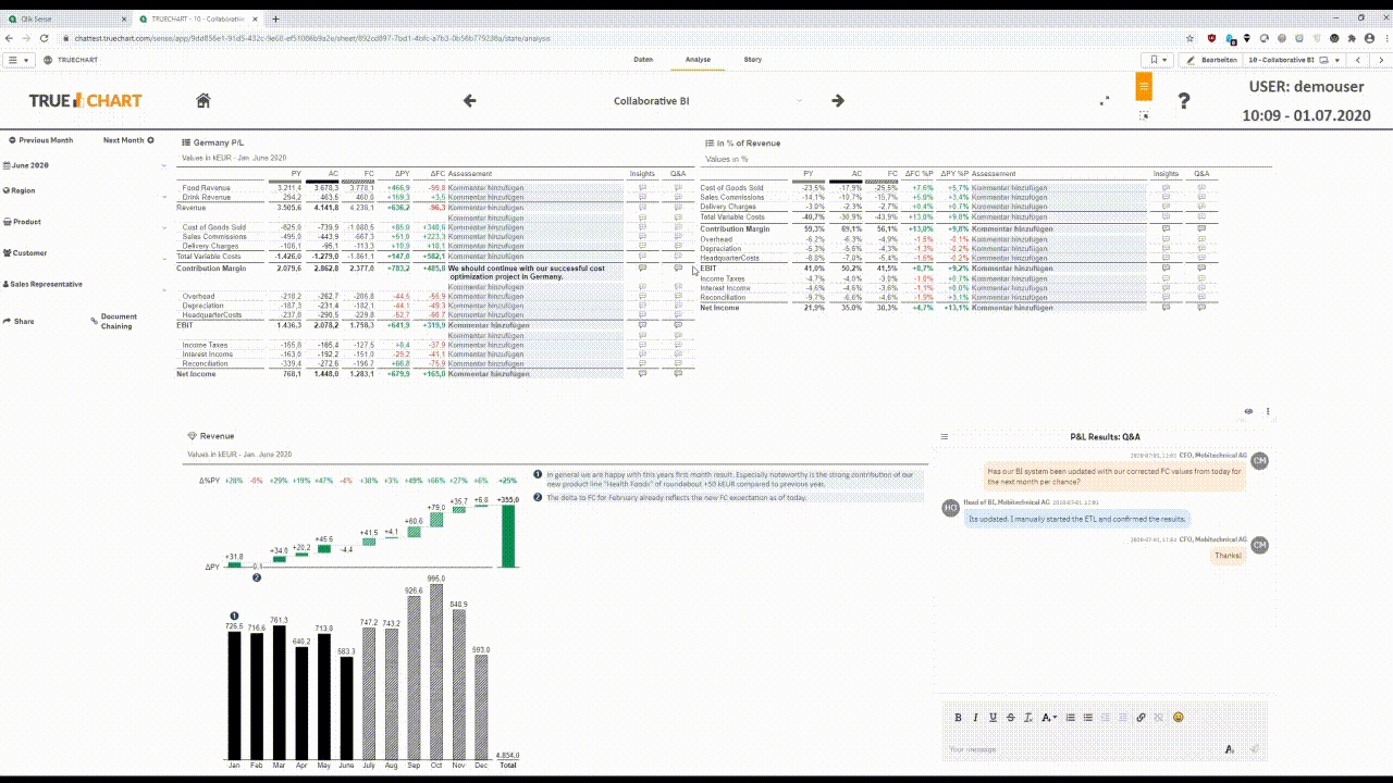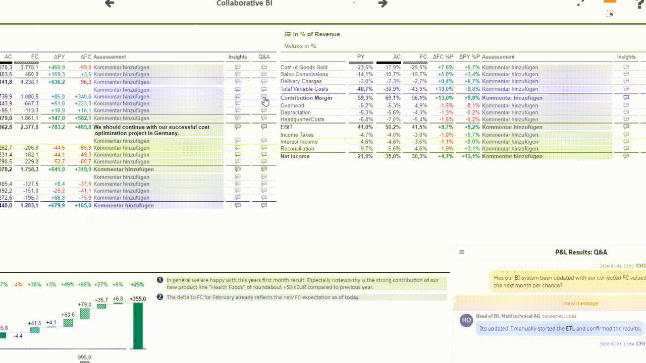 Bezpośrednia integracja funkcji wspólnego czatu z systemami BI.